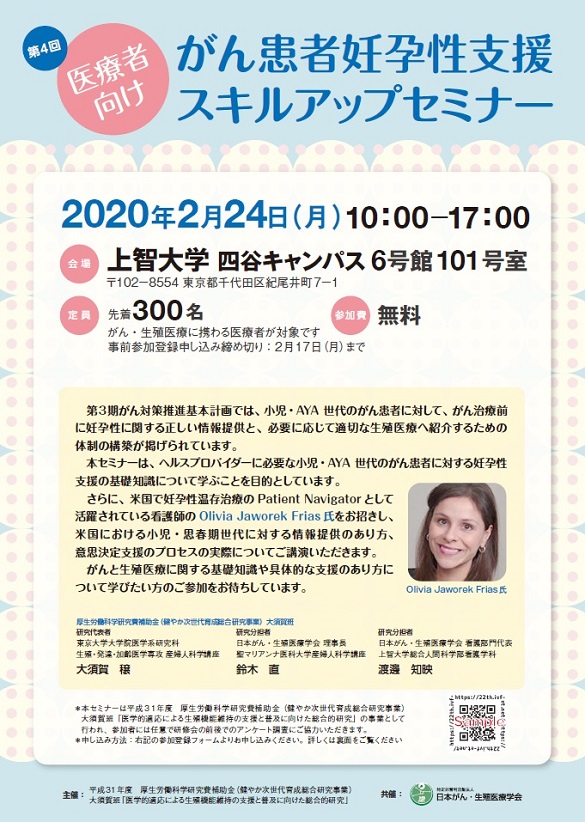 第4回医療者向けがん患者妊孕性支援スキルアップセミナー開催のお知らせ - 聖マリアンナ医科大学病院の取り組み