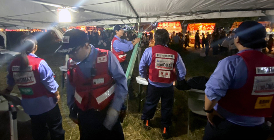 川崎市経済労働局からの依頼を受け、2019年10月5日に開催された川崎市制記念多摩川花火大会において当院の川崎DMATが医療救護活動を実施しました。世田谷区たまがわ花火大会との合同開催であることから、毎年多くの市民が訪れる花火大会であり、2018年度は19万人の方々が観覧されています。 川崎DMATとは川崎市健康福祉局によって運用されているDMATであり、主に局地災害が発生した場合に川崎市消防局の救急隊と連携しながら医療救護活動を行います。当院の他、川崎市立川崎病院と日本医科大学武蔵小杉病院が指定病院となっており、今回の花火大会でも3病院が連携し活動しました。 近年、不特定多数の市民が集まるイベントで発生しうる災害(マスギャザリング災害)への対応が重要視されています。今回の活動も多数の傷病者が発生する事態に備え、予め医療チームをイベント会場に配置しておくという川崎市の計画に基づいて行っています。東京オリンピック開催を来年に控え、災害拠点病院は今回の様な役割を担うことが増加すると考えられますが、市民や地域を守るため、引き続き積極的に参加協力を行って参ります。