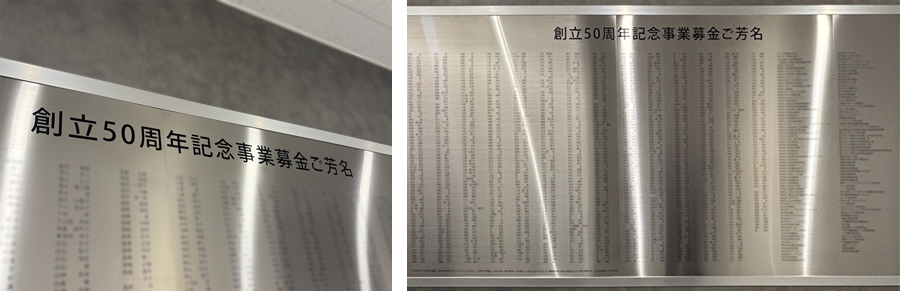 創立50周年記念事業募金芳名板 設置完了のご報告