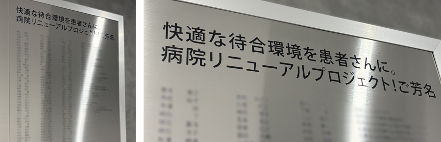 このたび、当院初のクラウドファンディング「快適な待合環境を患者さんに。病院リニューアルプロジェクト!」にご支援いただきました皆様への感謝の証として、寄付者芳名板の設置が2025年11月22日(土)に完了いたしましたので、ご報告申し上げます。