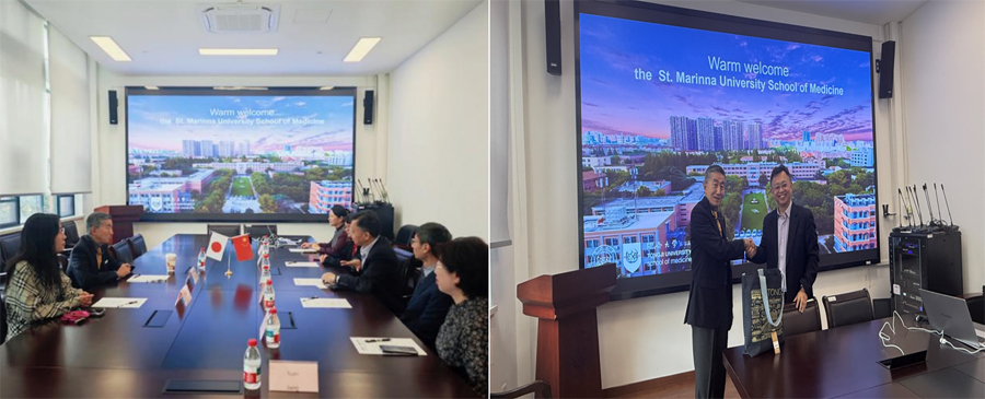 同済大学は医学部に加え理学、工学、文学、法学、哲学、管理学、教育学など有する総合大学です。本学は、2015年11月に同済大学医学院と医学教育交流プログラムに関する協定を締結し、医学部学生の相互派遣、卒前の短期臨床実習(病院研修)に関する教育内容や研究のための教職員の交流について合意しましたが、新型コロナウイルス感染症の影響でこれまで交流が行えませんでした。今年度、本学第5学年学生が同大学にて海外選択制実習を実施することに伴い、北川学長が訪問し、Jialin C. Zheng学部長と今後の大学間協定の方向性について意見交換を行いました。その後、上海第十病院の救急医学科、特別診療センター、神経外科という3つの診療科を視察しました。今後の交流の発展が期待されます。