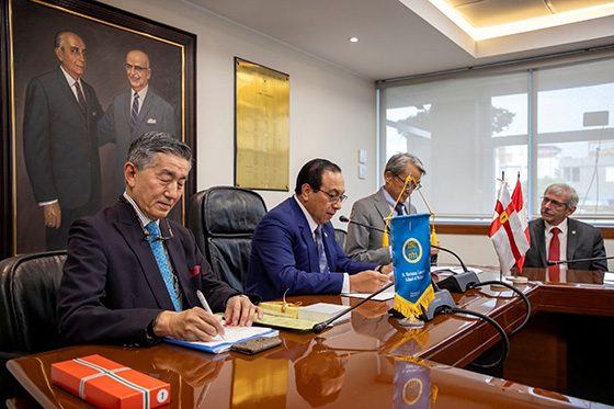 2026年3月27日、北川博昭学長がペルーの首都リマにあるカエタノ・エレディア大学との協定書の調印を行いました。調印式には、在ペルー日本国特命全権大使も出席されました。