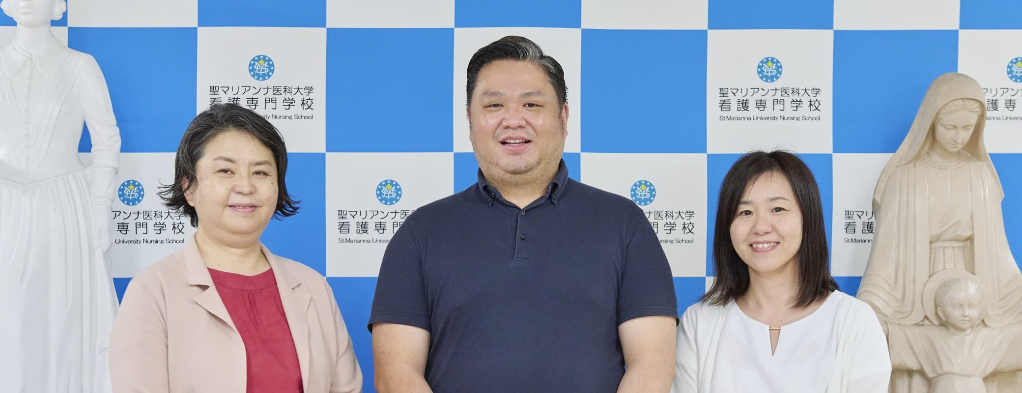 また、本校のカリキュラムは3年間を通し、現代の医療現場や地域の場において看護者に求められている①「医学的知識と看護援助を統合・連合しながら根拠に裏付けられた看護援助の実践や、臨床判断(クリニカルジャッジメント)ができる能力」、②「日進月歩で進展する医療現場や、地域包括ケアシステムの発展が著しい地域で、多職種と協働できる能力」、③「医療分野において日常業務の一部として取り入れられている情報通信技術(ICT)を活用するための基礎的能力」などの能力を講義・演習・臨地実習で学べる構築となっています。