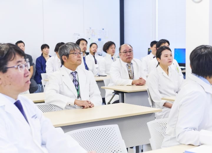 若手医師に対しても、多様な専門職との協働を通じて視野を広げ、柔軟な思考を育む教育体制を整えています。研究では、日常診療から生じる疑問を出発点とした臨床研究に加え、基礎医学講座や他大学などの外部機関との連携も進め、臨床と基礎の融合を図っています。
